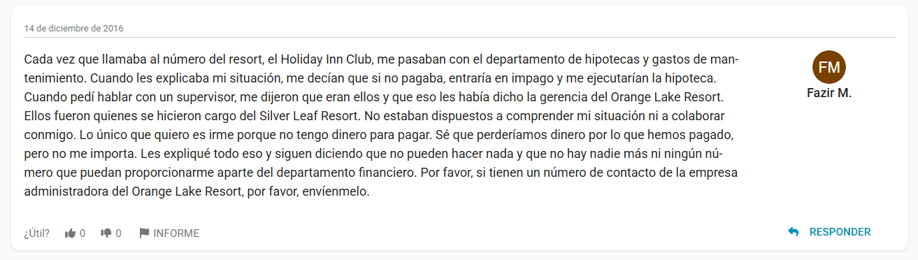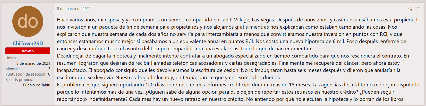Aquí hay un hilo en Red Week en el que varios usuarios expresan su angustia después de comprar su tiempo compartido y tener que lidiar con el dolor de cabeza de la hipoteca y la cuota de mantenimiento.