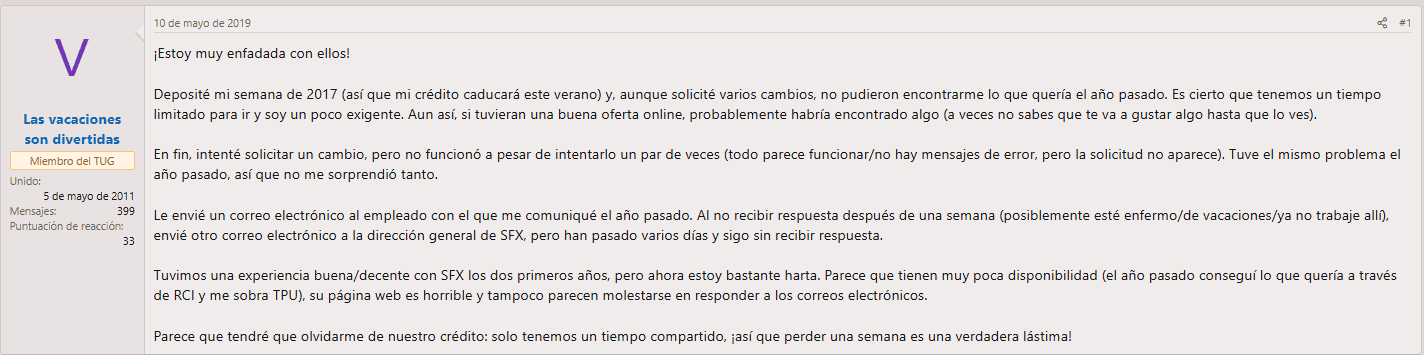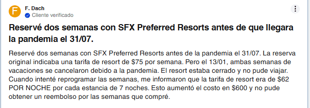 4. Beneficios Exagerados: Durante la Presentación de Ventas A menudo se presenta a SFX como la “arma secreta” para conseguir mejores intercambios que RCI o Interval. Muchos propietarios dicen que esto simplemente no ocurrió.
