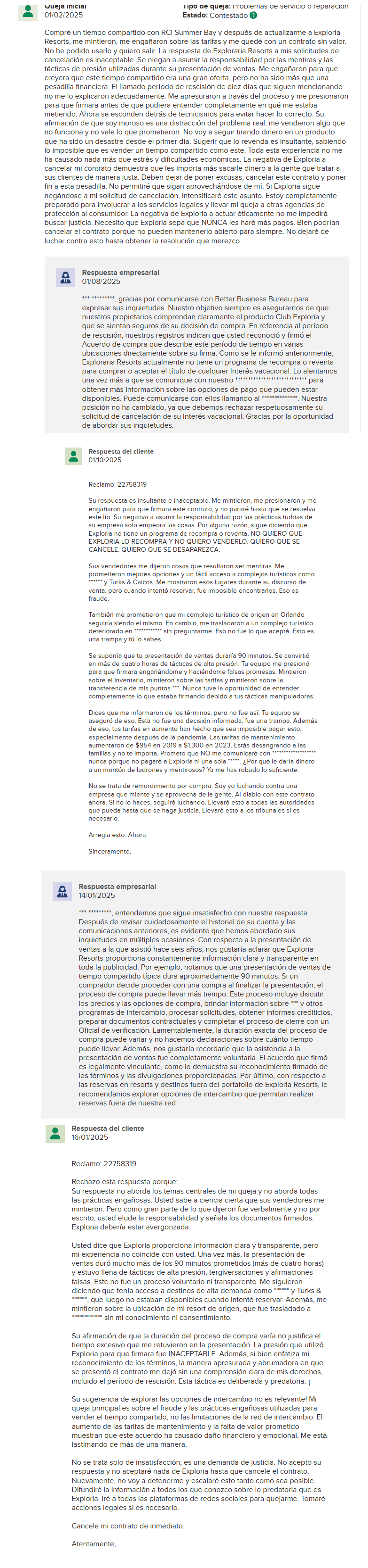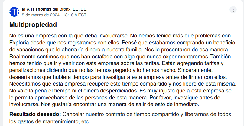 4. Dificultades para Salir de un Contrato con Exploria Resorts