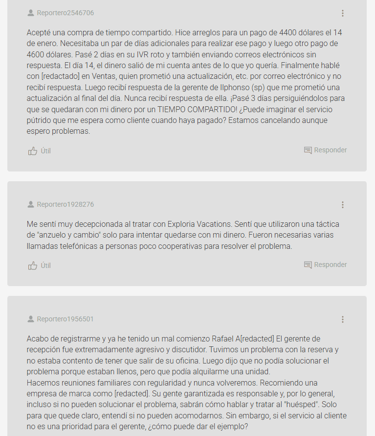 El servicio al cliente es un punto de frustración para muchos propietarios de Exploria Resorts. Las quejas más frecuentes mencionan: