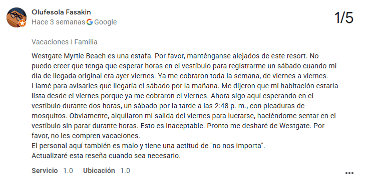 - Presión de Ventas de Tiempos Compartidos: Westgate es una empresa de tiempos compartidos primero, y no te dejan olvidarlo. Muchos huéspedes reportan tácticas de venta agresivas, incluso cuando solo quieren disfrutar sus vacaciones.