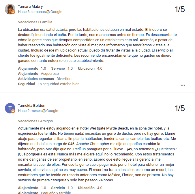 - Cargos Ocultos o Problemas de Facturación: Cargos inesperados, tarifas resort confusas y disputas de facturación son quejas comunes. Algunos huéspedes se sienten estafados por amenidades que deberían estar incluidas.
