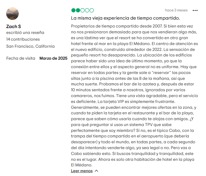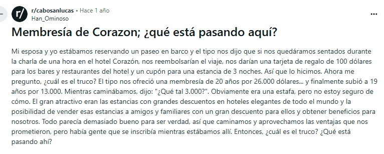 Aquí es donde la situación pasa de “algo confusa” a “¿por qué firmé esto?” rápidamente. Ambas partes de la marca Cabo Villas están vinculadas a un modelo de tiempo compartido o “club vacacional” que muchos clientes terminan lamentando. Estas son las señales de alerta: