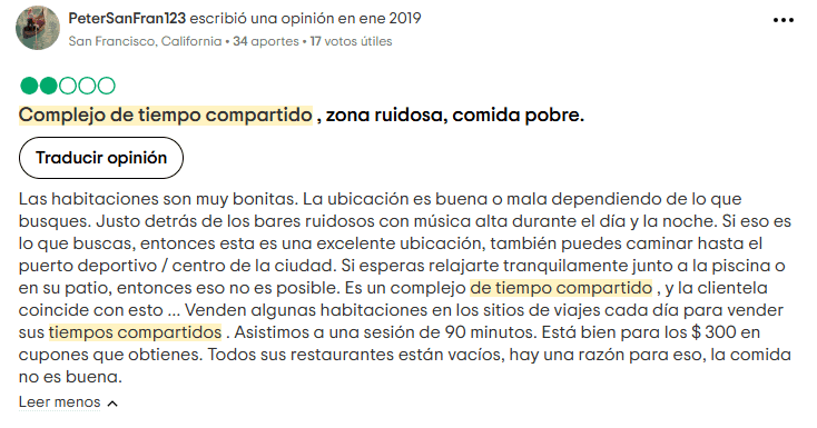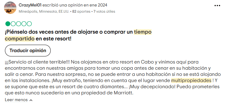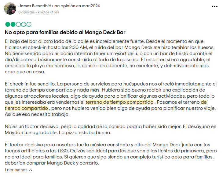 - Bajo Valor de Reventa: Las quejas recurrentes sobre el resort afectan significativamente su reputación, lo que impacta directamente tu capacidad para revender el Tiempo Compartido—si es que puedes encontrar un comprador.