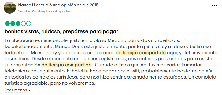 Casa Dorada presume de una ubicación privilegiada junto a la playa, pero incluso las mejores vistas no pueden compensar una serie de problemas recurrentes que han sido señalados tanto por visitantes como por propietarios de Tiempos Compartidos. Aquí tienes una lista:
