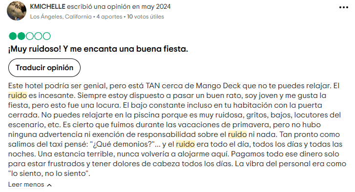 - Una Fiesta que Nunca Termina (Aunque No la Quieras): Quizá el problema más evidente en Casa Dorada es el ruido. Un resort junto a la playa debería evocar calma y relajación, pero en cambio, el Mango Deck Bar—un bar vecino famoso por sus fiestas—se asegura de que la paz y la tranquilidad sean lo último que experimentes. La música a alto volumen resuena hasta altas horas de la noche, y dado que el principal punto de venta del hotel es su vista a la playa, no hay escapatoria al estruendo. Incluso los huéspedes que tienen cosas positivas que decir sobre el resort mencionan el ruido como un problema constante. Así que, si esperas una escapada serena, necesitarás tapones para los oídos… o reconsiderar del todo.