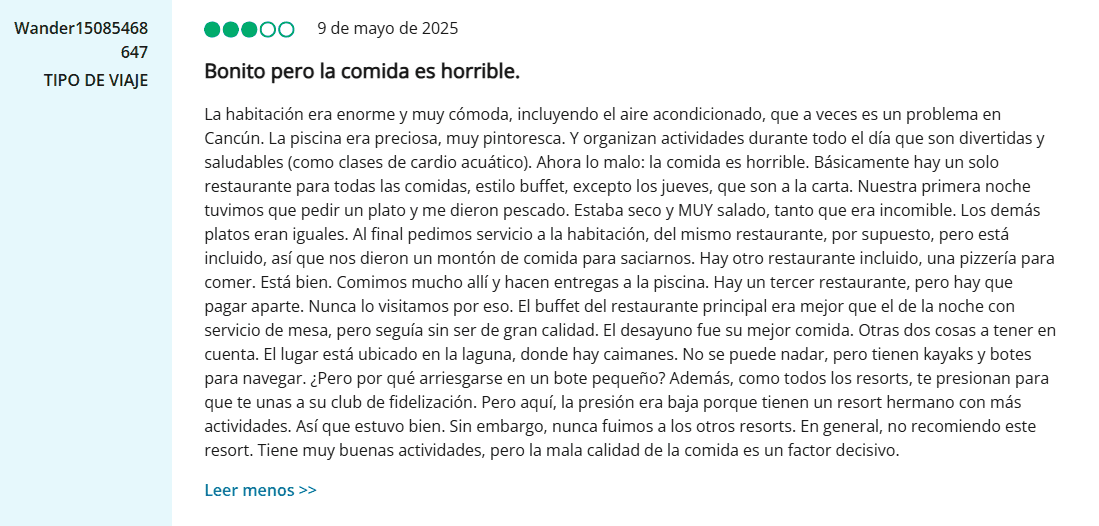 - Cuotas obligatorias ocultas: Muchos clientes pensaron que las tarifas del plan todo incluido eran opcionales, pero luego descubrieron que eran obligatorias, incluso si no se utilizaba el resort.