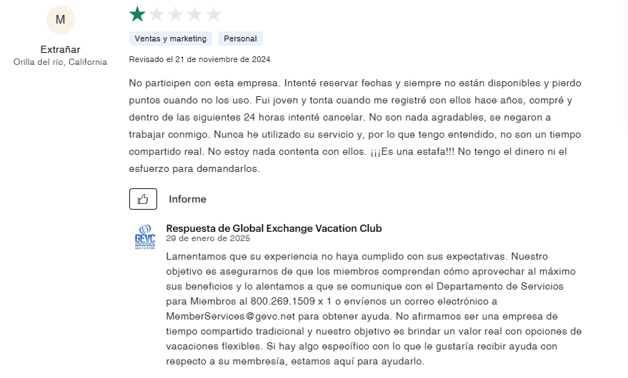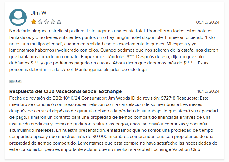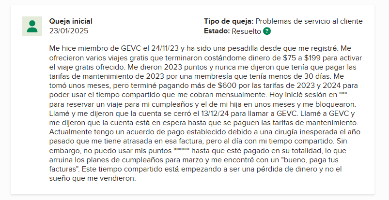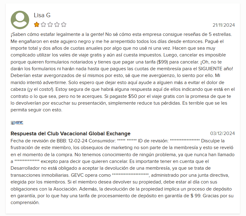 Si bien GEVC ofrece un modelo de propiedad vacacional que funciona para algunos, muchos miembros han expresado insatisfacción con la disponibilidad de reservas, las tarifas adicionales y la dificultad para cancelar. Si eres de los que buscan una salida, evaluar cuidadosamente tus opciones es clave para encontrar el mejor camino a seguir.