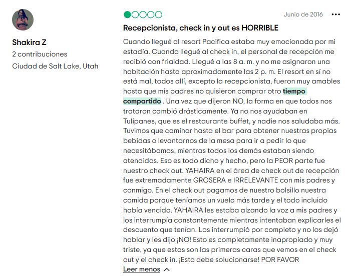 Nadie espera un servicio de cinco estrellas todo el tiempo, pero cuando estás atrapado en un contrato de tiempo compartido, las apuestas son más altas. Estás pagando por la promesa de calidad y atención consistentes, por lo que ser ignorado puede sentirse como una bofetada en la cara.