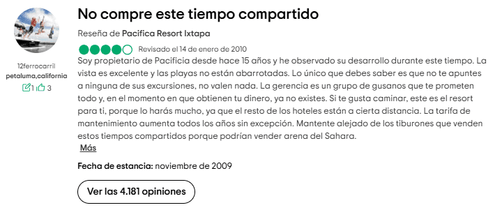 Pacifica Resorts puede estar situado en los pintorescos parajes de Ixtapa y Zihuatanejo, pero desde un servicio al cliente que desaparece hasta tarifas que suben más alto que las palmeras, el brillo desaparece rápidamente. Claro, las costas de México son impresionantes, pero cuando el estrés de un tiempo compartido supera la alegría de la vista, es hora de reconsiderar tus opciones. Hazte un favor: salta la promesa de Pacifica y, si ya estás demasiado involucrado, encuentra una empresa de salida de tiempo compartido confiable para ayudarte a salir.