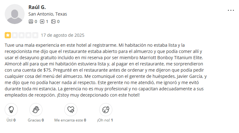 Diferencias entre lo Prometido y lo Ofrecido: Algunos miembros mencionan que beneficios como áreas VIP, upgrades o trato preferencial no existen en la práctica o no se cumplen como fueron presentados.