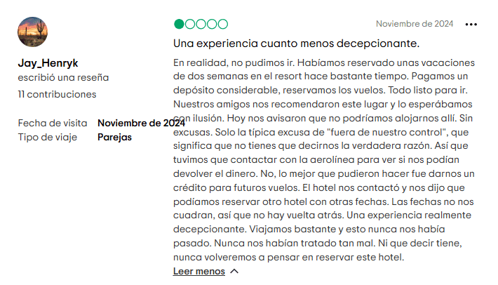 - Huéspedes que se sienten engañados o incómodos.