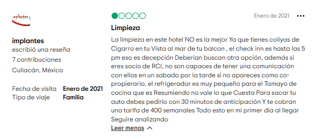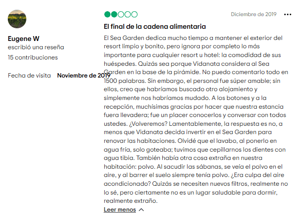 - Cuotas de mantenimiento en aumento. Estos costos tienden a subir con el tiempo y, considerando la calidad del resort, no parece que valga la pena.