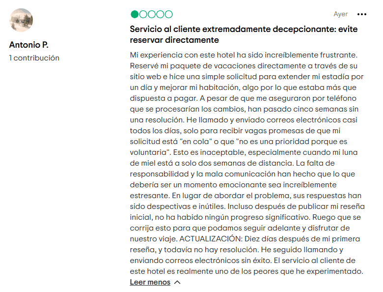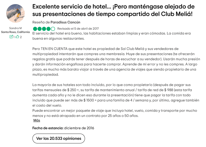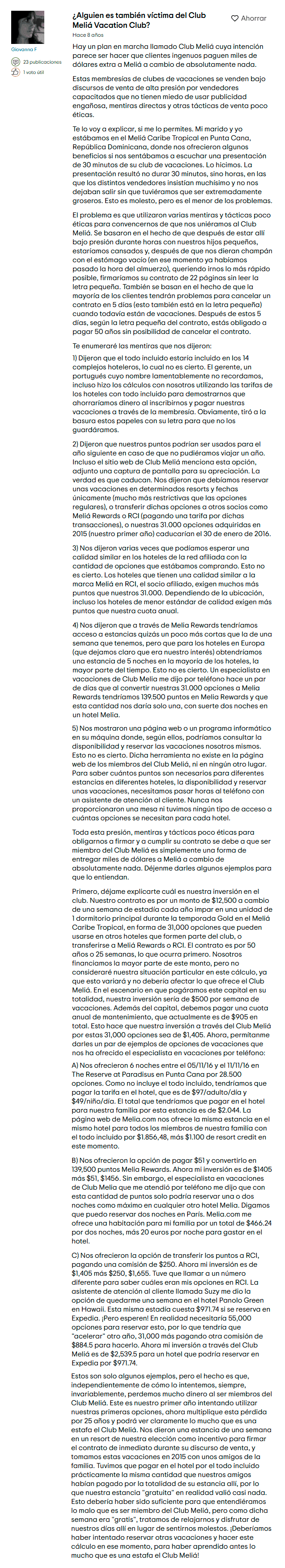 Para empeorar las cosas, foros como TripAdvisor están llenos de hilos titulados "¿Alguien más es víctima del Club Melia?" Esa no es exactamente la lealtad a la marca que Melia esperaba. Los usuarios en estas plataformas relatan haber sido engañados por tácticas de ventas y haberse inscrito en membresías de las que luego se arrepintieron. Algunos se sintieron completamente estafados, citando promesas incumplidas y una venta constante y agresiva de servicios adicionales.