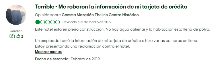 - Gamma Mazatlán Centro Histórico: Cargos fraudulentos y ubicación engañosa.