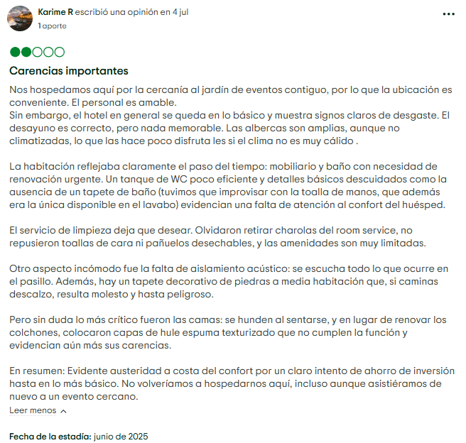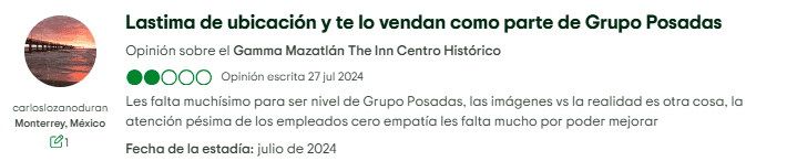 Esto no es un caso aislado; múltiples ubicaciones Gamma presentan patrones repetidos de insatisfacción del cliente. Mientras que marcas más estandarizadas de Posadas, como Fiesta Inn o Grand Fiesta Americana, mantienen estándares consistentes, el modelo de franquicia flexible de Gamma con frecuencia conduce al descuido.