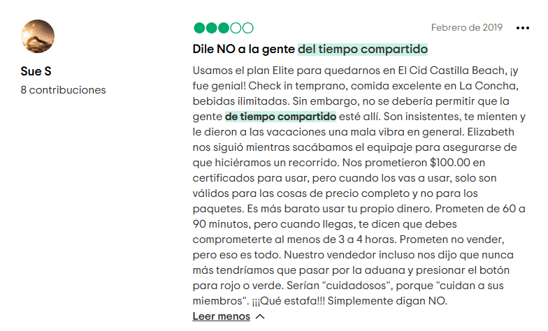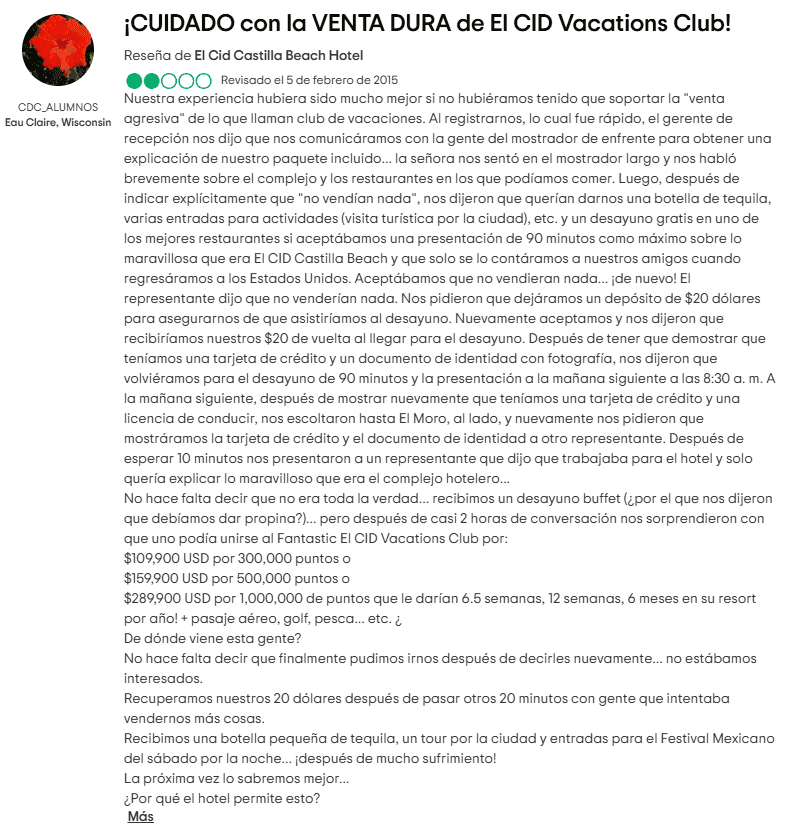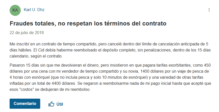Esta es una fuerte. Reseñas de sitios web como TripAdvisor describen situaciones en las que la realidad de ser propietario no coincide con las brillantes promesas hechas durante la venta. Las personas esperaban trato VIP y reservas sin complicaciones, pero en su lugar se encontraron con restricciones y un servicio al cliente mediocre.