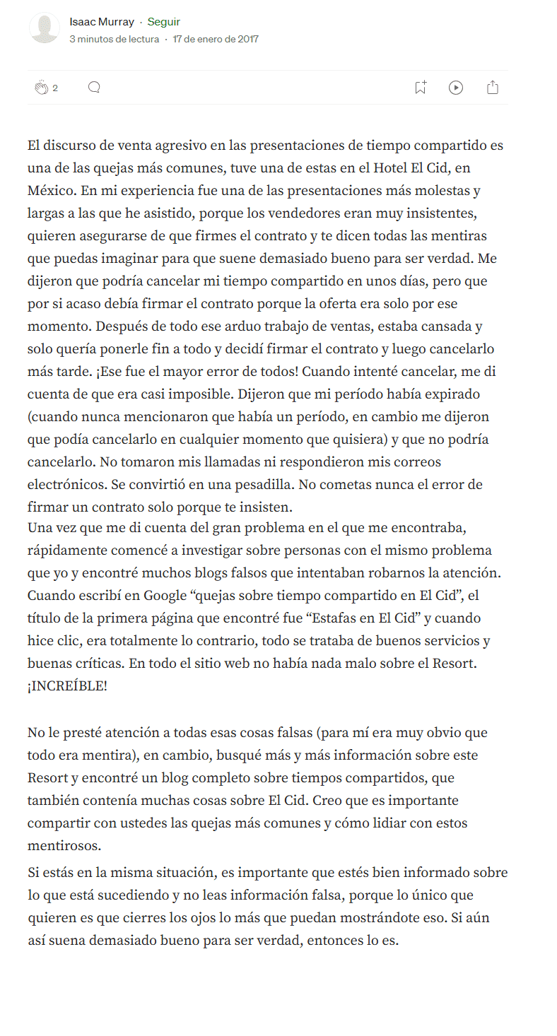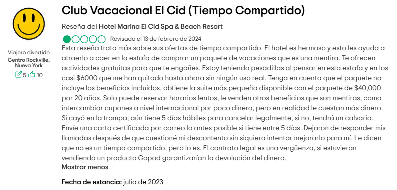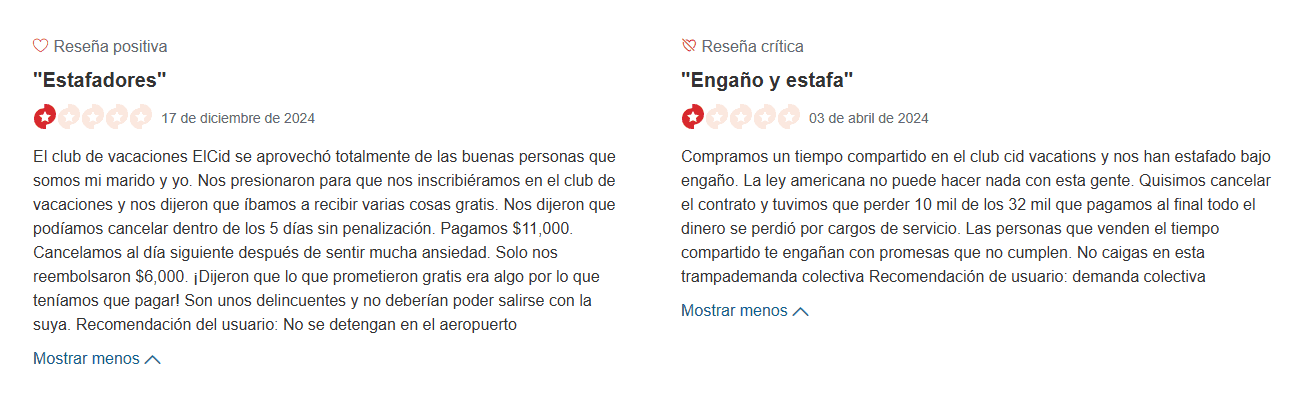 Plataformas como PissedConsumer.com y ComplaintsBoard.com están llenas de quejas sobre El Cid. Muchas de estas quejas detallan experiencias de engaño, insatisfacción y arrepentimiento. Y aunque algunas de estas reseñas datan de hace años, las quejas siguen llegando—una señal de alerta para cualquiera que esté considerando comprar.