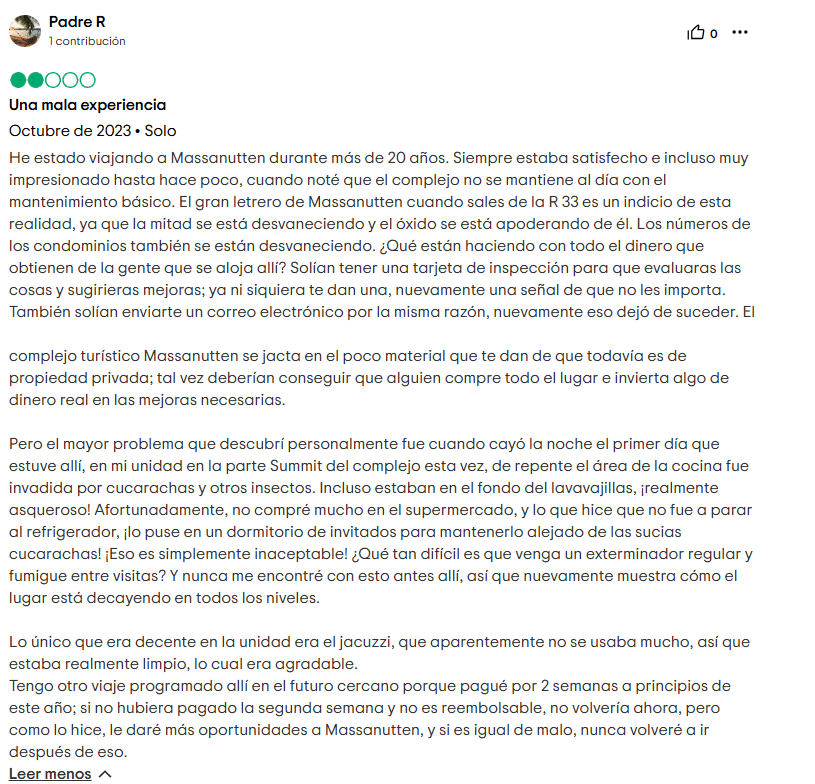 Si revisas plataformas de reseñas como TripAdvisor o la Better Business Bureau (BBB), notarás un tema común en las quejas sobre Massanutten Resort: