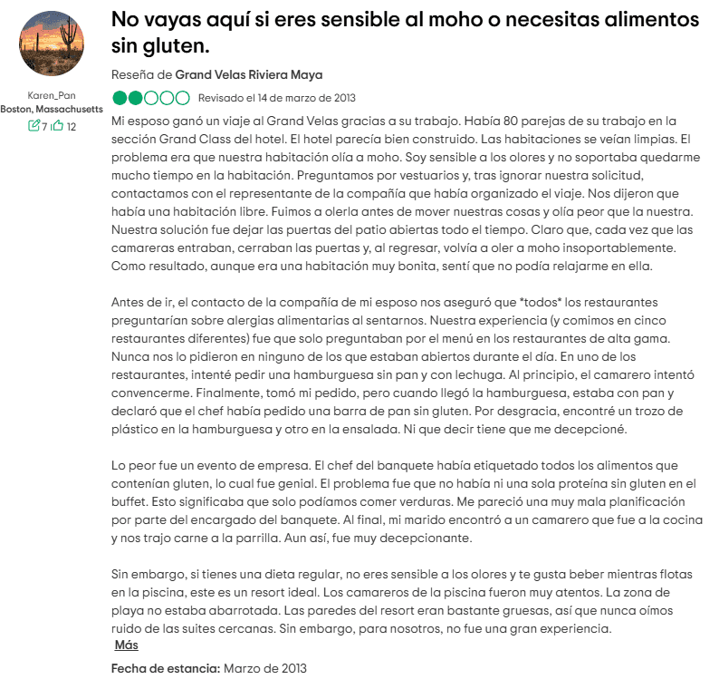 2. Comida sobrevalorada e inconsistente: Aunque Grand Velas afirma ofrecer una de las mejores cocinas de la región, las opiniones son mixtas. Los huéspedes que esperan sabores de clase mundial reportan comida insípida o servida tibia. Los restaurantes de playa en Riviera Maya han sido criticados por sus opciones de buffet poco atractivas y por la sobrepoblación.