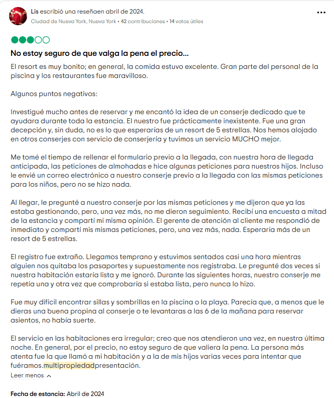 Cuando se suman todas estas señales de alerta, servicio inconsistente, amenidades decepcionantes, dramas legales y ventas agresivas, es comprensible que la gente se sienta engañada. Especialmente si estás atrapado en un contrato costoso y de largo plazo que no se puede modificar fácilmente.