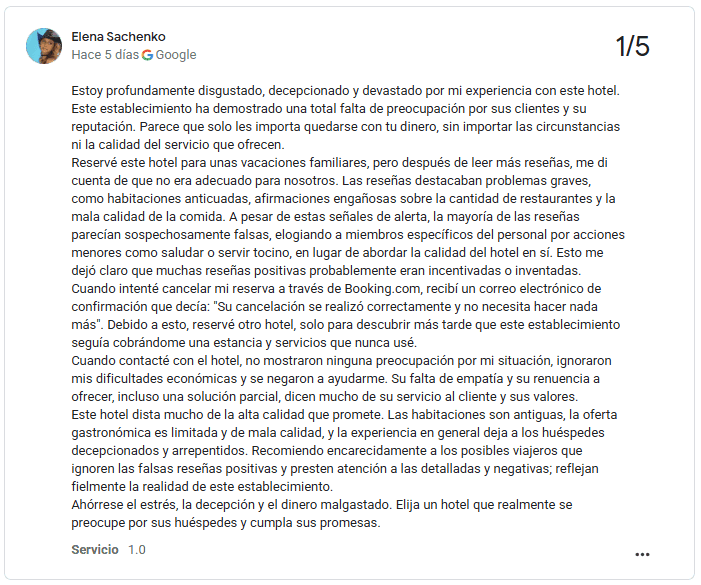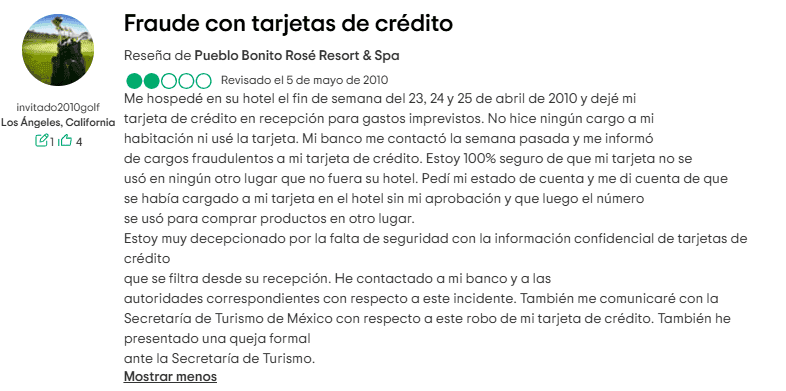 En un caso de 2010, la tarjeta de crédito de un huésped fue utilizada sin autorización, lo que llevó a cargos fraudulentos. Aunque podría ser un caso aislado, sigue siendo motivo de preocupación para posibles visitantes.
