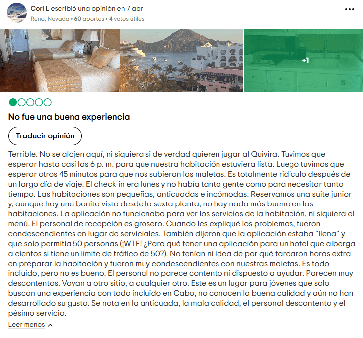 Aunque algunos visitantes elogiaron la hospitalidad, otros mencionaron interacciones poco serviciales o incluso despectivas por parte del personal. Las quejas estuvieron relacionadas principalmente con retrasos en la entrega de habitaciones y problemas con las aplicaciones del resort.