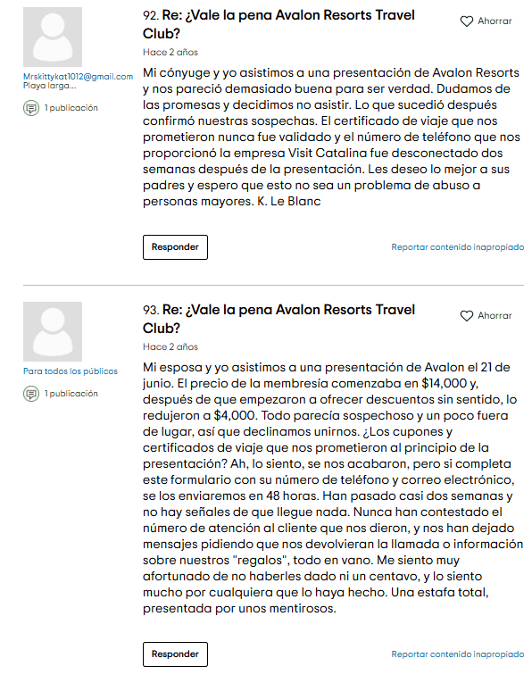 Investigando más, los orígenes de Avalon parecen estar vinculados a Michael K. Kelly, un nombre relacionado con Avalon Resorts Yucatán en México. A fines de los años 90, esta entidad se renombró como Avalon Vacation Resorts tras investigaciones en EE.UU. sobre fraude de valores y mal uso de fondos de inversionistas. No son precisamente antecedentes alentadores para una empresa que maneja miles de dólares de los consumidores.