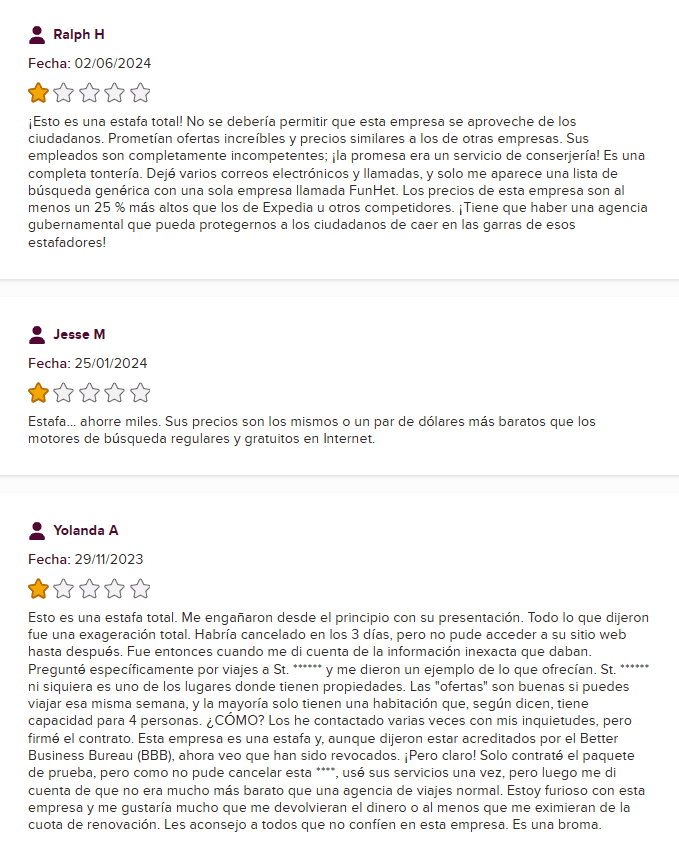 Casi todas las principales plataformas de quejas, desde BBB hasta TripAdvisor y Ripoff Report, están llenas de reseñas de una estrella y acusaciones de prácticas engañosas. Esto es lo que han dicho clientes reales: