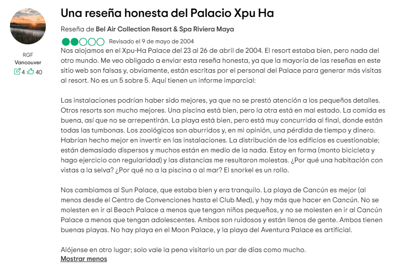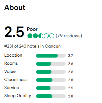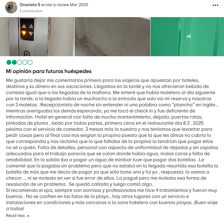 Actualmente, Cyan Cancun mantiene una baja calificación de 2.5 estrellas en TripAdvisor, con una mayoría de críticas negativas.