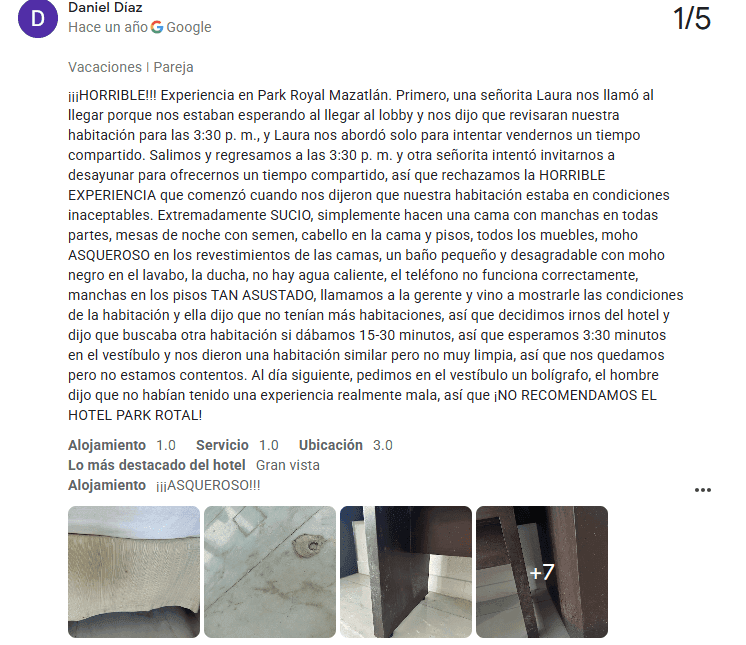 Si pensabas que estos problemas eran exclusivos de unas pocas ubicaciones, piénsalo de nuevo. Park Royal Beach Mazatlán actualmente tiene una calificación de 3.2 estrellas en TripAdvisor, y sigue bajando. Los huéspedes han reportado repetidamente problemas de higiene, personal poco servicial y dificultades con las reservas. Algunos viajeros que habían reservado con meses de anticipación llegaron solo para descubrir que sus reservaciones ‘desaparecieron’, obligándolos a pagar extra o buscar otro hotel en el último minuto.