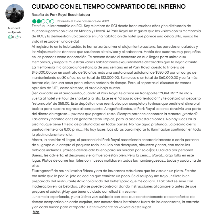 Park Royal Hotels & Resorts puede verse increíble en sus folletos publicitarios, pero la realidad suele ser muy distinta. Desde un servicio deficiente y mantenimiento pobre hasta explotación laboral y violaciones ambientales, hay muchas razones por las que alguien querría salir de un contrato de tiempo compartido con ellos. Si este es tu caso, encontrar una empresa confiable para ayudarte a salir puede ser la mejor decisión.