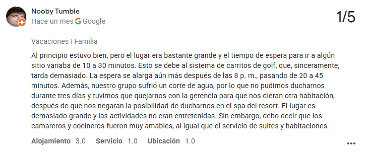 - Problemas de Accesibilidad: Debido a que el resort está construido sobre una colina empinada, necesitas usar carritos de golf para todo. Los tiempos de espera pueden ser molestos, especialmente si tienes problemas de movilidad o simplemente quieres disfrutar de tus vacaciones sin depender de un transporte.