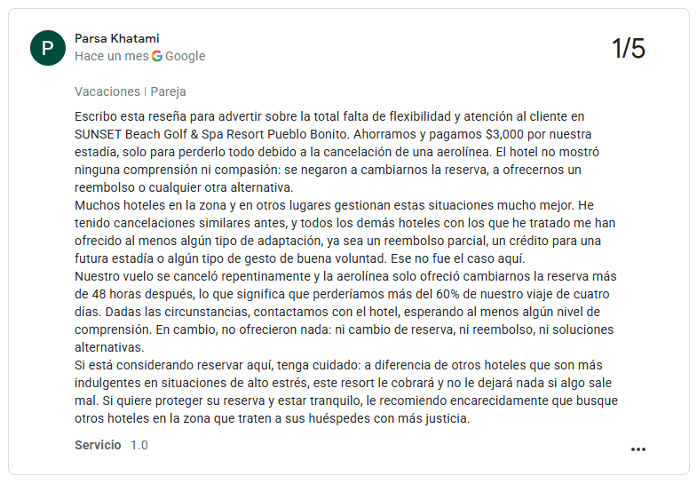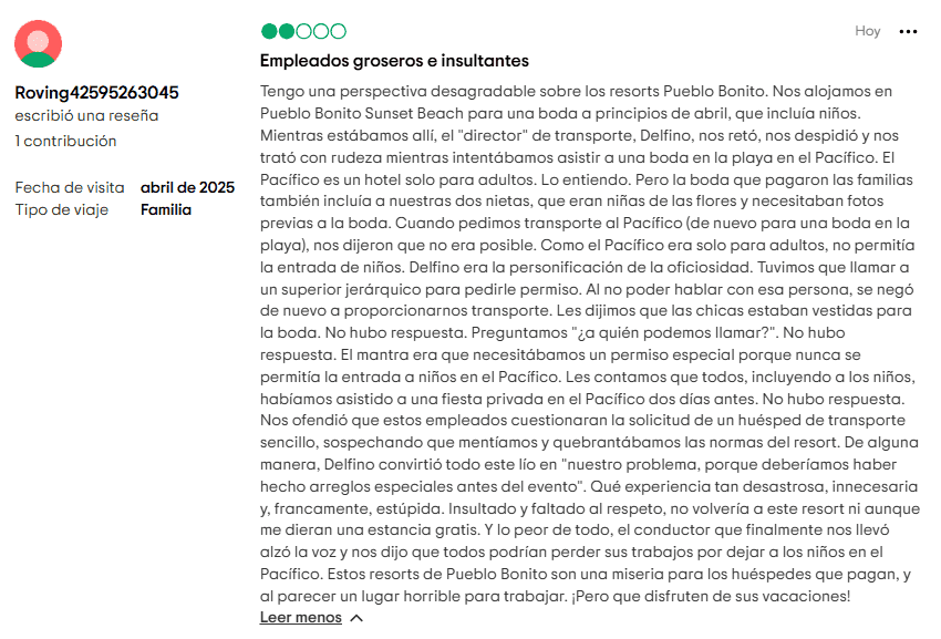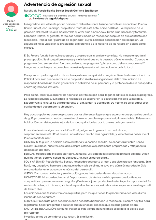 Si ha tenido algún problema con los resorts de Pueblo Bonito, ¡háganoslo saber a través del formulario de nuestra página web!