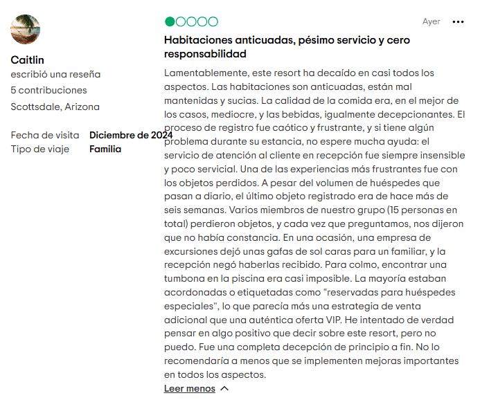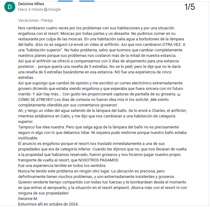 - Problemas de Seguridad: En 2019, ocurrió un incidente preocupante donde un huésped denunció una agresión sexual por parte de un empleado. Más allá del hecho, lo impactante fue la pésima manera en que la administración lo manejó, con retrasos y una aparente falta de empatía.