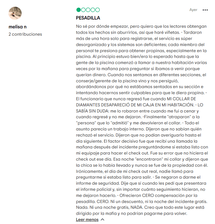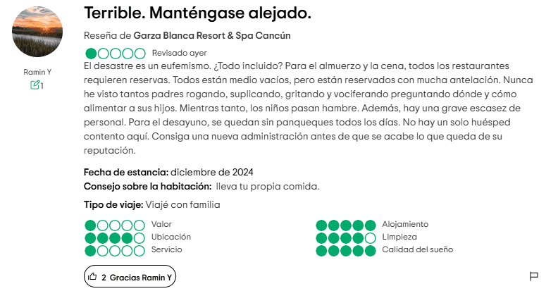 - Calidad Reducida de los Resorts: Informes de un servicio deficiente, largos tiempos de espera en los restaurantes y el deterioro de las instalaciones son temas comunes.