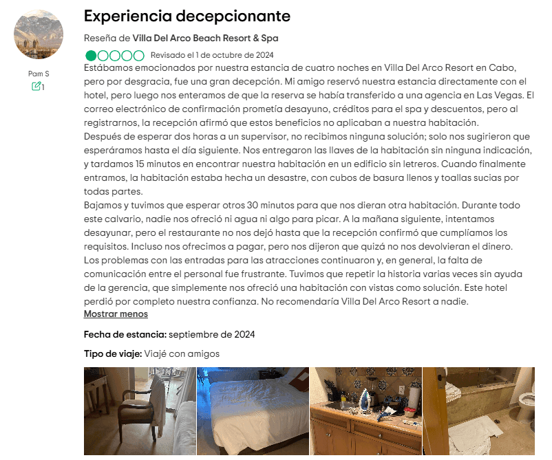 Una de las quejas más comunes de los huéspedes de Villa del Arco es el enfoque agresivo para vender tiempo compartido. Muchos viajeros reportan sentirse presionados para asistir a presentaciones disfrazadas de “experiencias VIP” o “reuniones informativas”. Lo que comienza como un simple recorrido puede convertirse rápidamente en horas de discursos de venta intensos donde el personal intenta encerrar a los visitantes en contratos a largo plazo sin margen para reconsiderarlo.