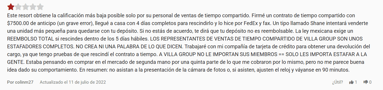 Para más información sobre otros resorts de tiempo compartido de The Villa Group y evitar caer repetidamente en sus trampas, por favor visita estos artículos.