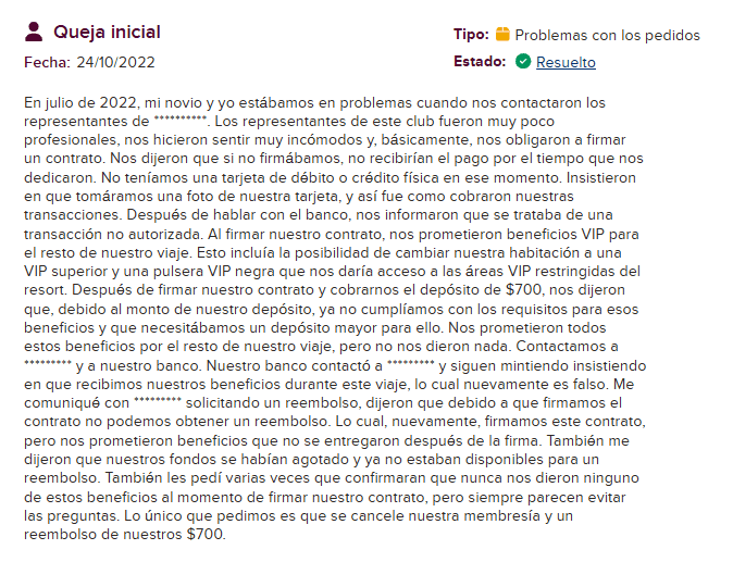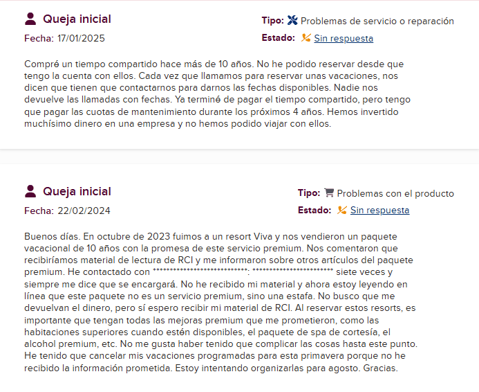 Beneficios que no cumplen lo prometido: Miembros reportan dificultades para reservar las fechas o habitaciones promocionadas en la venta. Las áreas VIP no siempre resultan exclusivas y las fechas bloqueadas o la limitada disponibilidad hacen que las “vacaciones garantizadas” no sean tan accesibles.