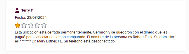 - Un registro más de una empresa de tiempo compartido abandonada.