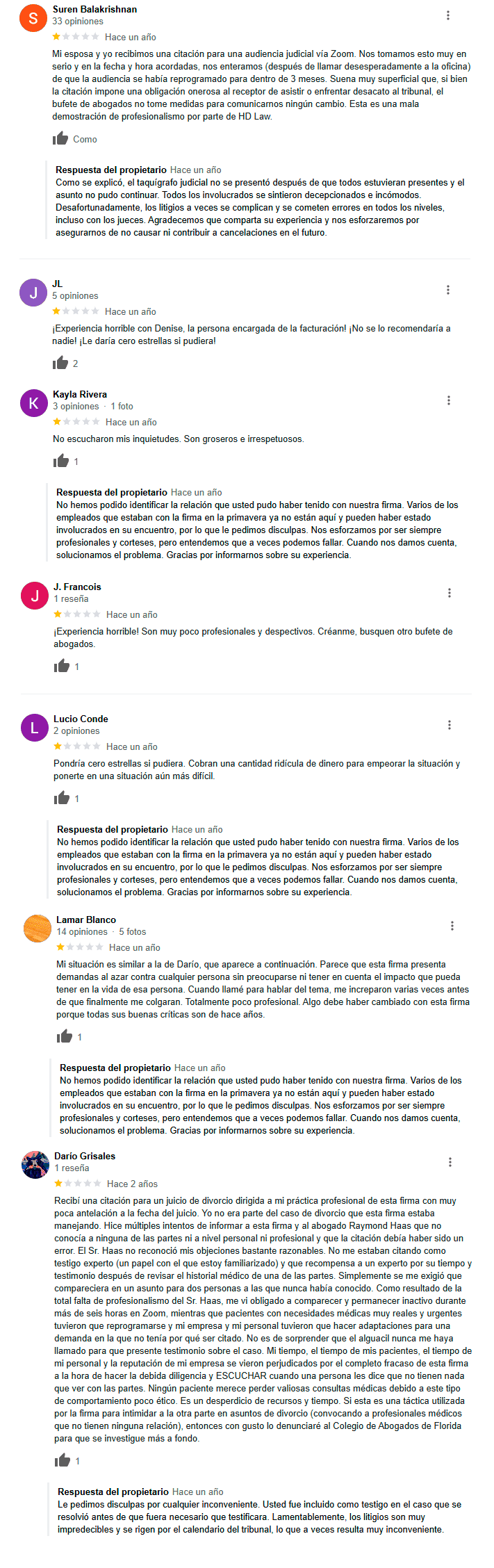 Basado en la información limitada y mixta disponible, otorgamos a HD Law Partners una calificación de 2 estrellas. Aunque podrían haber sido una opción confiable en el pasado, las reseñas recientes resaltan problemas significativos que los clientes potenciales deben considerar. Por ahora, se recomienda cautela al interactuar con esta firma.