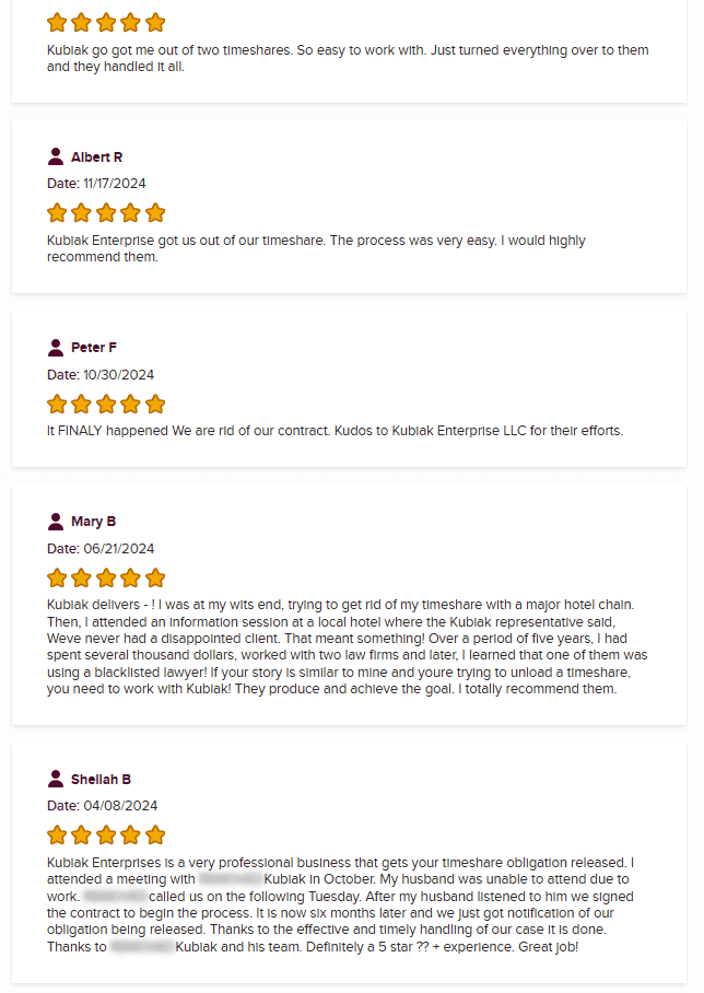 En conjunto, Kubiak Enterprise obtiene una calificación prudente pero respetable de 4 estrellas dentro del sector de cancelación de tiempos compartidos. No muestran señales claras de fraude, pero su historial excesivamente limpio y su baja visibilidad justifican mantener cierta cautela—especialmente en una industria donde las reputaciones pueden variar drásticamente.