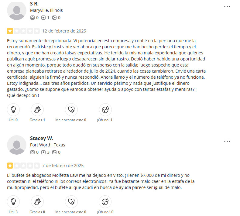 Todo indica que Molfetta Law desapareció silenciosamente, dejando atrás clientes varados, contratos sin resolver y una estela de insatisfacción.
