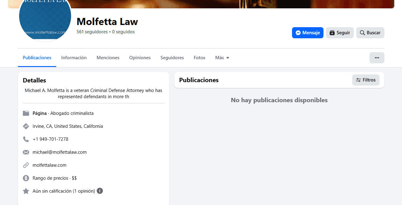 La página de Facebook de Forza sigue disponible, pero también está abandonada —reflejando el mismo descuido que observamos con las redes de Molfetta Law.