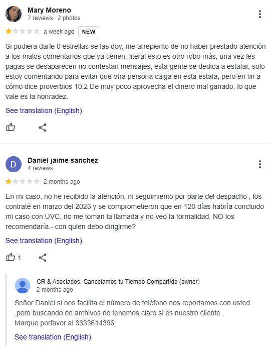 CR y Asociados es una empresa de salida de tiempo compartido con sede principal en México. A pesar de su ubicación, la empresa es accesible para usuarios que hablen inglés y portugués, como lo destacan las opciones de idioma disponibles en su sitio web.