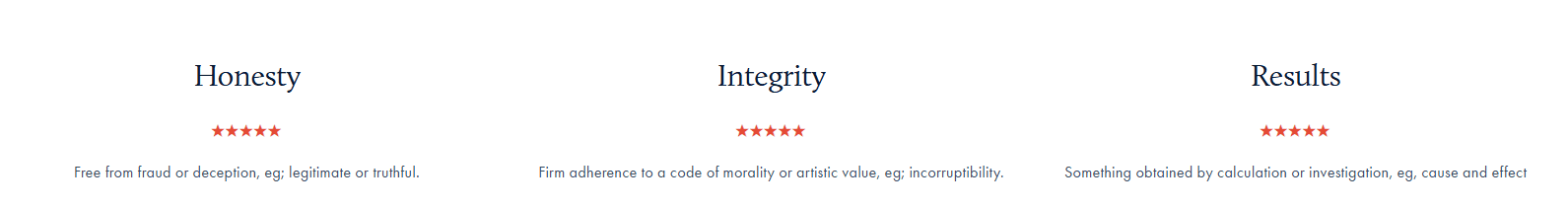 Añadiendo a la duda, el sitio web de PCS incluye una sección de reseñas. Sin embargo, en lugar de testimonios reales de clientes, la sección ofrece definiciones vagas de valores como "Honestidad", "Integridad" y "Resultados". Aunque estas palabras pueden sonar atractivas, no están respaldadas por experiencias verificables de clientes, lo que hace que esta parte de su sitio web parezca poco sincera. La afirmación del sitio de mostrar "reseñas de personas como tú" parece engañosa, ya que no se presentan reseñas reales.