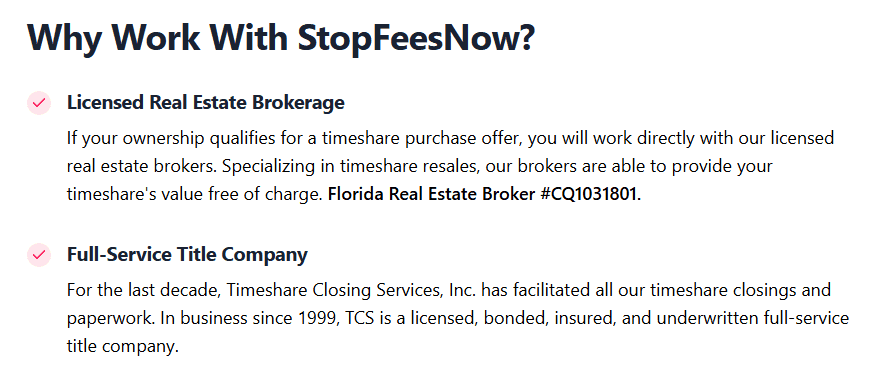 Si encuentras “StopFeesNow” mientras buscas opciones de cancelación de tiempos compartidos, no recomendamos interactuar con ellos. Y recuerda: entregar tu tiempo compartido a un revendedor no garantiza que quedarás libre de tus cuotas de mantenimiento—sin importar lo que su sitio trate de insinuar.