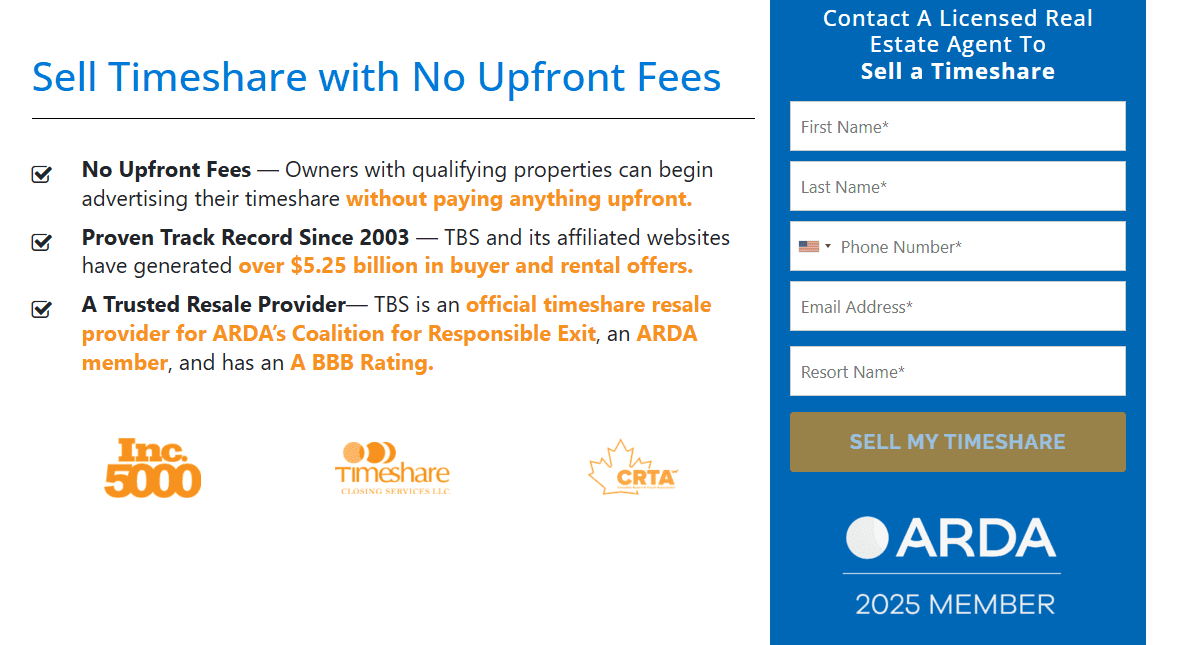 Al igual que muchos otros servicios de venta de tiempos compartidos que existieron antes y después, Timeshare Broker Services (frecuentemente abreviado como TBS) parece operar bajo una fórmula conocida y repetida. Su sitio web presenta las promesas habituales: ayuda para vender su tiempo compartido, un proceso que suena sencillo, y afirmaciones diseñadas para reducir las preocupaciones del propietario.
