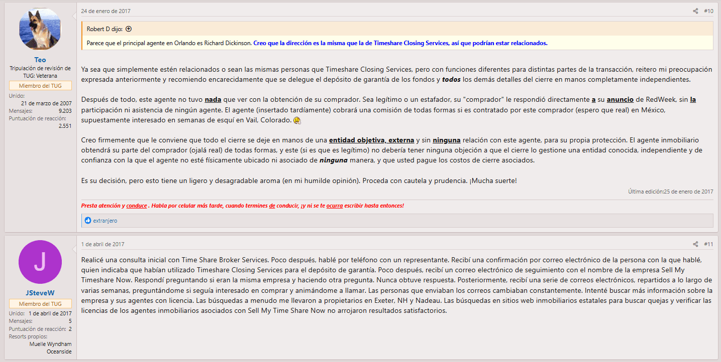 Un punto particularmente llamativo —y preocupante— señalado por varios usuarios es la posible conexión entre Timeshare Broker Services, Sell My Timeshare Now (un conocido anunciante de reventa) y Timeshare Closing Services. Timeshare Closing Services aparece como afiliado de TBS y ya se sabe que también trabaja con Sell My Timeshare Now. Esto ha llevado a muchos consumidores a especular que estas empresas forman parte de una red interconectada más amplia. Si esto es algo positivo o negativo queda a criterio del lector, pero cuando se observa junto con la cantidad de reseñas negativas asociadas a cada una de estas compañías, sin duda nos hace levantar la ceja.