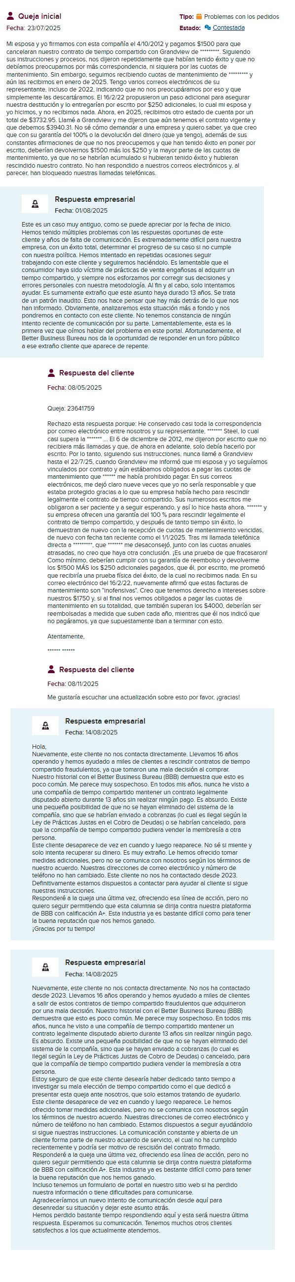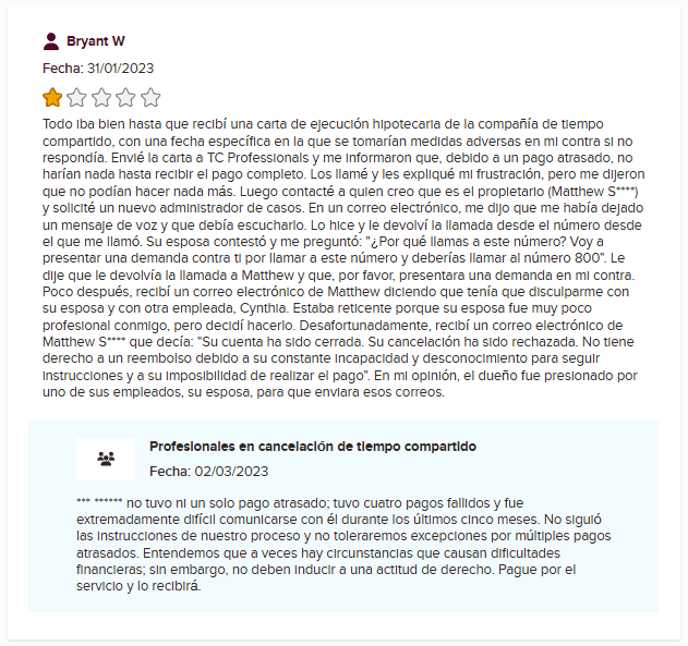 Más allá de estos pocos testimonios, la información sobre Timeshare Cancel Professionals prácticamente desaparece. Y, como hemos mencionado antes, la falta de información junto con una imagen “positiva” en línea no equivale a confiabilidad. Si bien no hay escándalos ampliamente documentados o estafas confirmadas vinculadas a TCP, su presencia de bajo perfil, su sitio desactualizado y sus respuestas dudosas a las reseñas generan suficientes señales de alerta para repetir lo evidente: